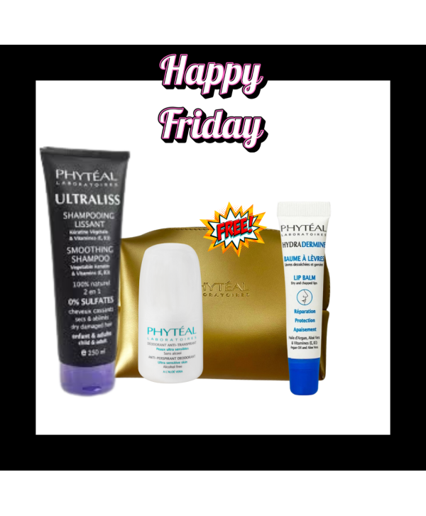 75,000 TNDPhytéal Ultraliss Shampooing 250 ml + Deo + Hydradermine baume à lèvres + trousse Offerte