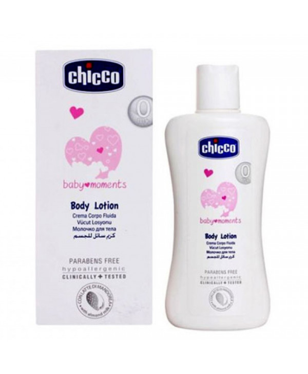 Baby moments est une gamme complète de produits pour les soins journaliers de la peau sensible de bébé.Ce lotion pour le corps enrichi au lait d’amande, nourrit la peau et pénètre rapidement, doux au pH neutre, sans parabène, sans alcool et sans colorant.Il se compose de produits hypoallergéniques et testé dermatologiquement à la composition sans danger qui conviennent dès la naissance pour les peaux sensibles du bébé.
