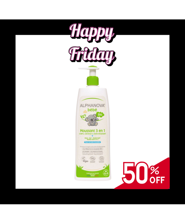 Le Moussant 3 en 1 ALPHANOVA bébé® BIO lave le corps, les cheveux et fait mousser le bain. 98% d’origine naturelle, est enrichie en eaux forales bio (tilleul, camomille et lavande) pour apaiser bébé lors du bain du soir. Un soin très doux, légèrement parfumé, triple action qui ne dessèche pas la peau.