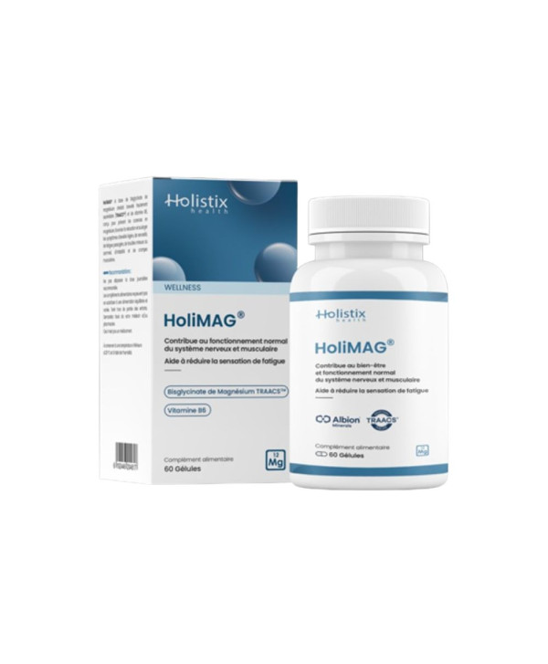 HoliMAG, votre nouvelle génération de magnésium. Avec sa forme innovante en bisglycinate de Magnésium chélaté, HoliMAG est mieux absorbé, mieux toléré et offre une efficacité optimale.