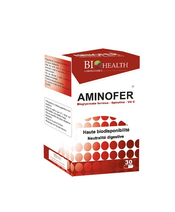 INGRÉDIENTS ACTIFS :bisglycinate de fer, Extrait d’Acérola (Malpighiapunicifolia), chlorophylle naturelle, vitamines B2, B6, B12, folates, biotine.
