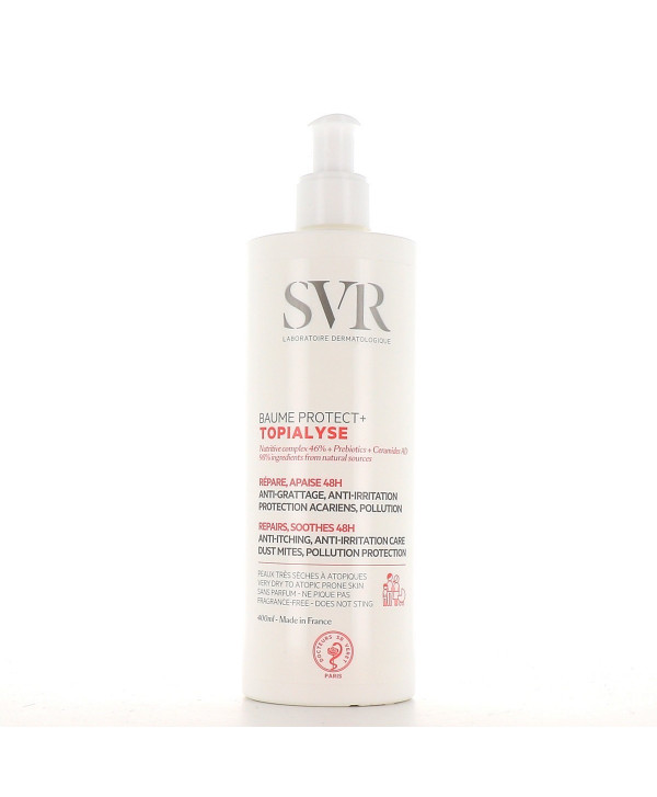Topialyse baume intensif est compos de : 46% Phase molliente, 10% huile de coton, 6% huile de coco, Beurre de Babassu, Phospholipide, Glycrinevgtale, 4% Niacinamide et Sucre prébiotique double action.