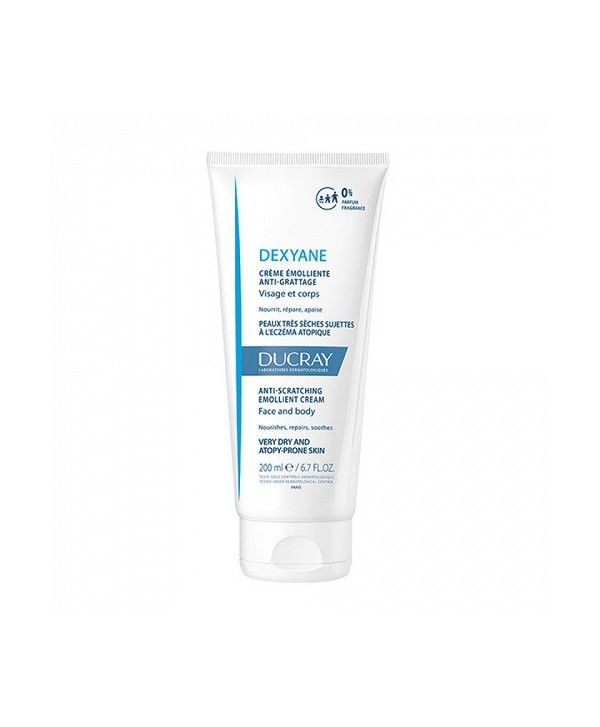La Crème Emolliente anti-grattage Dexyane de DUCRAY apaise les irritations et répare rapidement la barrière cutanée altérée.