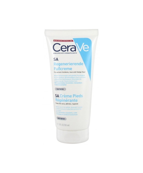 CeraVe SA Crème Pieds Régénérante 88 ml est une crème régénérante pour les pieds très secs, abîmés et rugueux.
