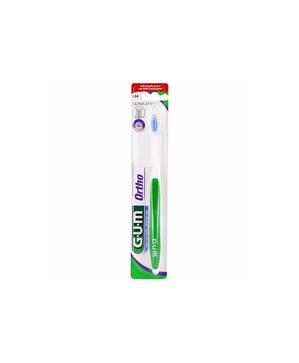 Cette brosse à dents à tête compacte avec sa coupe en V facilite le brossage autour des appareils orthodontiques