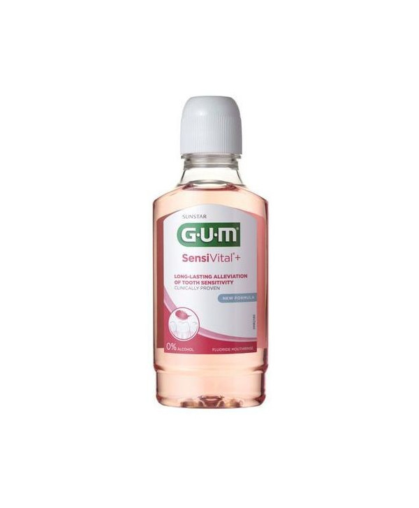 Le bain de bouche SensiVital de GUM aide à soulager rapidement les douleurs des dents sensibles. Ce bain de bouche multi soins réduit la sensibilité nerveuse, revitalise les gencives et protège l'émail des dents. Formulé sans alcool pour limiter les irritations.