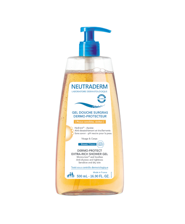 Le Gel Douche Surgras DERMO-PROTECTEUR est spécialement formulé pour nettoyer tout en douceur les peaux sensibles et sèches. Mousse onctueuse. Laisse un film protecteur sur la peau qui aide à lutter contre le dessèchement cutané. La peau est apaisée, nourrie et douce. Testé sous contrôle dermatologique, pH neutre. Dès la naissance.