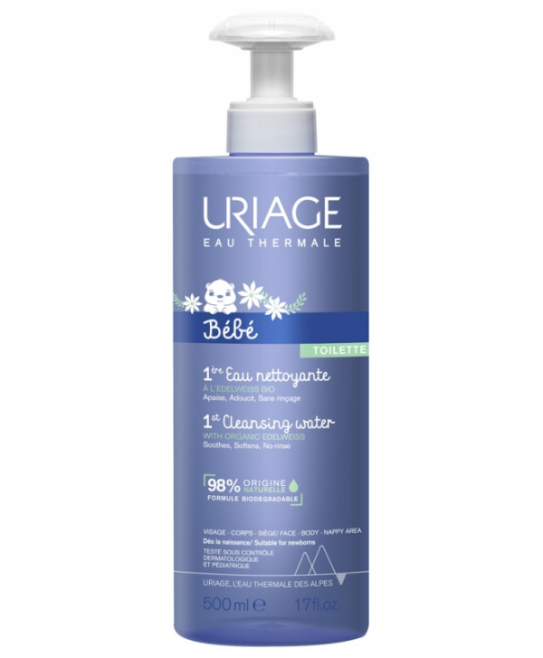 À base d'Eau Thermale d'Uriage et enrichie en actifs hydratants et adoucissants, la 1ère Eau Nettoyante laisse la peau propre, douce et délicatement parfumée.
