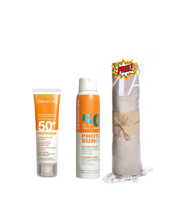 97,500 TNDDermacare Photosun sprf 50 + Peaux grasses 1.5 + Photosun Brume spf 50+ 150 ml + Fouta Offerte