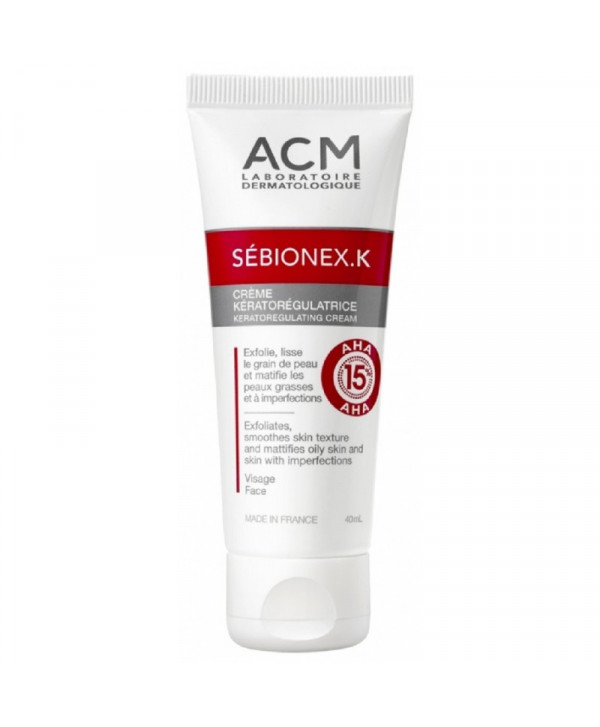 ACM Sébionex.K Crème Kératorégulatrice 40 ml est une crème recommandée pour exfolier, lisser le grain de peau et matifier les peaux grasses et à imperfections.