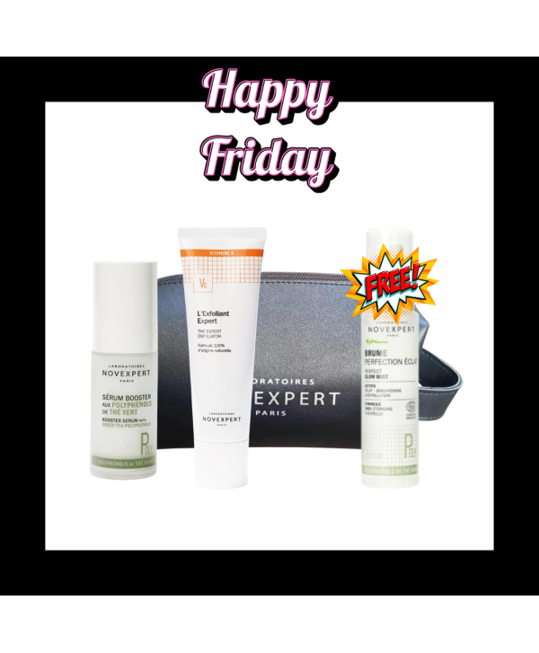 le serum booster anti taches , l'exfoliant expert et la brume perfection éclat offerte