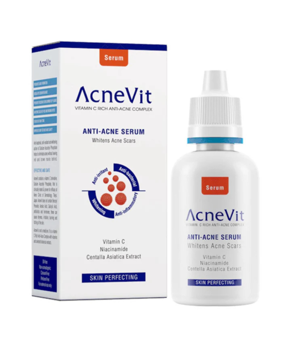 Le sérum anti-acné Acnevit traite l'acné, prévient sa formation et éclaircit la couleur des marques d'acné pour offrir une peau d'apparence uniforme.